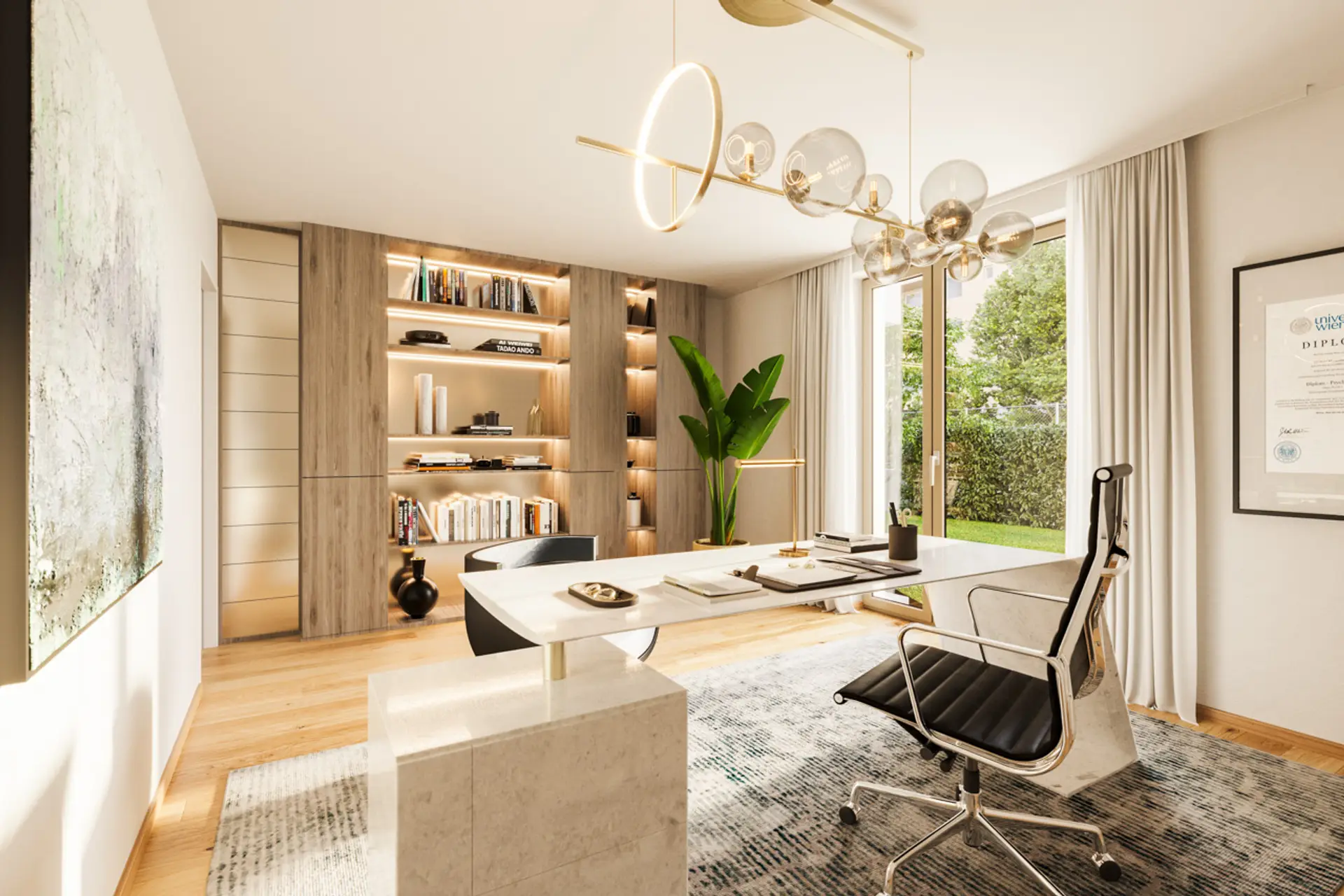 hochwertigen Materialien und lichtdurchfluteten Räumen.
