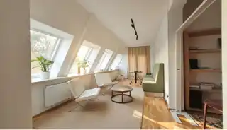 außergewöhnliche Dachgeschosswohnung in einem Eckzinshaus.