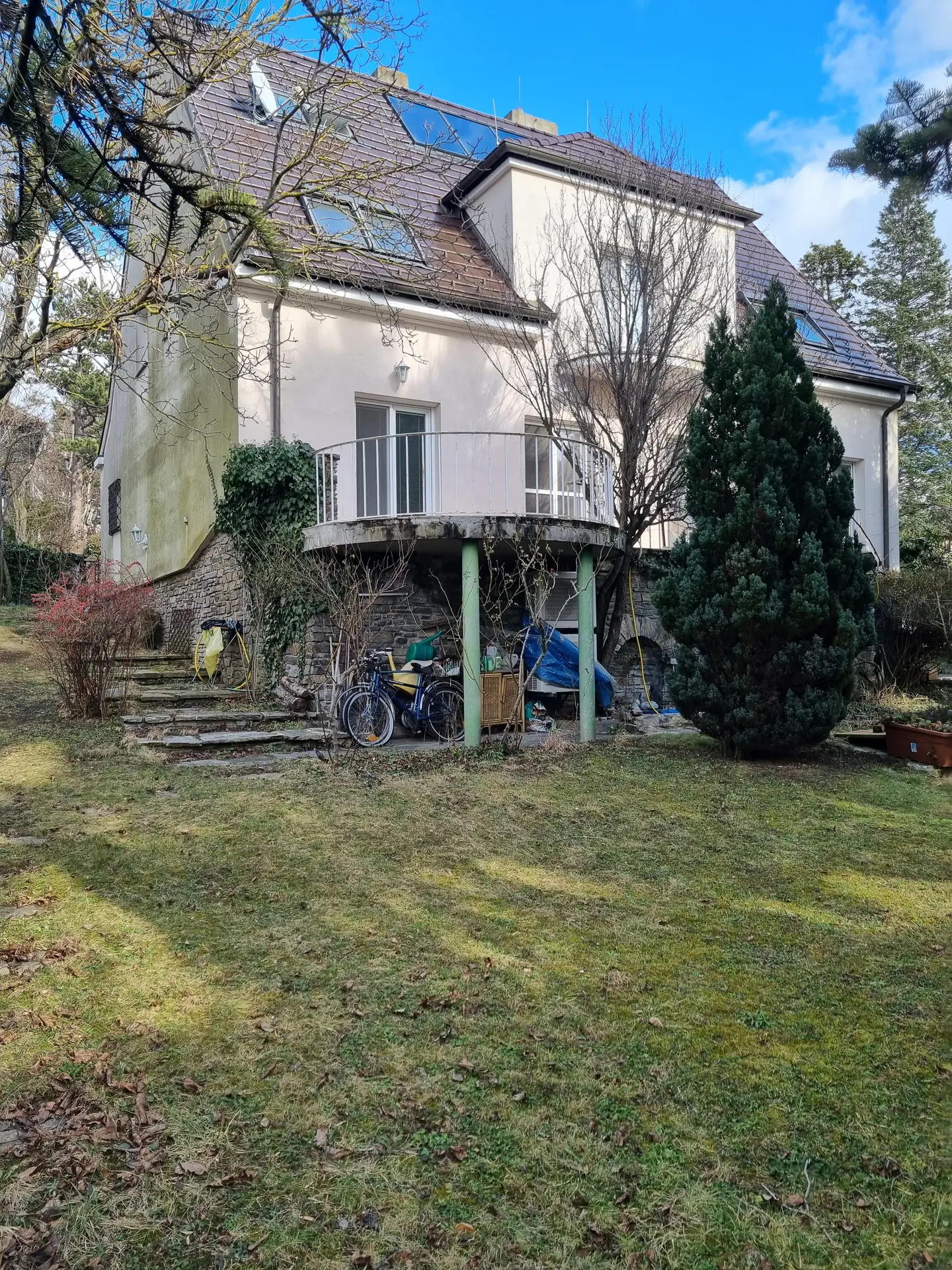 Grundstücksgröße laut GB-Auszug ca. 650 m², fast quadratisch. Die Villa selbst steht parallel zur Küniglberggasse, wodurch vom Grundstück großzügige Grünflächen, auch für Pool geeignet, zur gärtnerischen Gestaltung verbleiben. Die nachbarlichen Grundstücke/Liegenschaften werden größtenteils von den Eigentümern nicht bzw. nur sporadisch genutzt, weshalb auf dieser Liegenschaft wirklich eine Ruheoase gegeben ist.