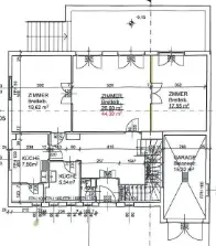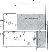 Im Plan als Abstellbereich definiert findet sich quasi eine kleine Wohneinheit mit Wohnzimmer, Schlafzimmer, Bad, WC und Abstellbereich. Das Dachgeschoss bietet eine Fläche von ca. 76 m².