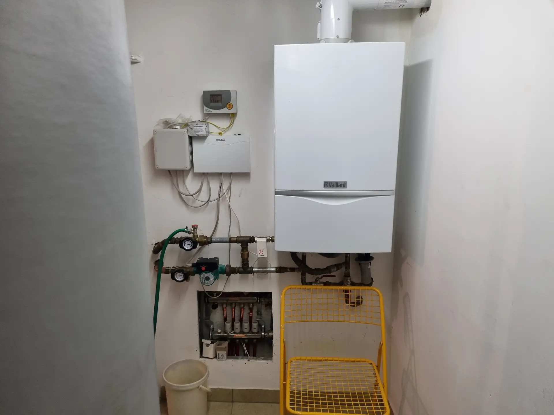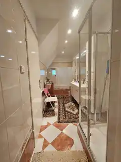 Vom Keller, der ca. gut die Hälfte der verbauten Fläche ausmacht, bis hinauf in das Dachgeschoss wurde eine Fußbodenheizung, auf Basis Gas hergestellt. Vom EG bis in das DG gibt es in allen Räumen zusätzliche Klimageräte. Eine PV-Anlage sorgt für die Aufbereitung des erforderlichen Warmwassers einer Großfamilie.