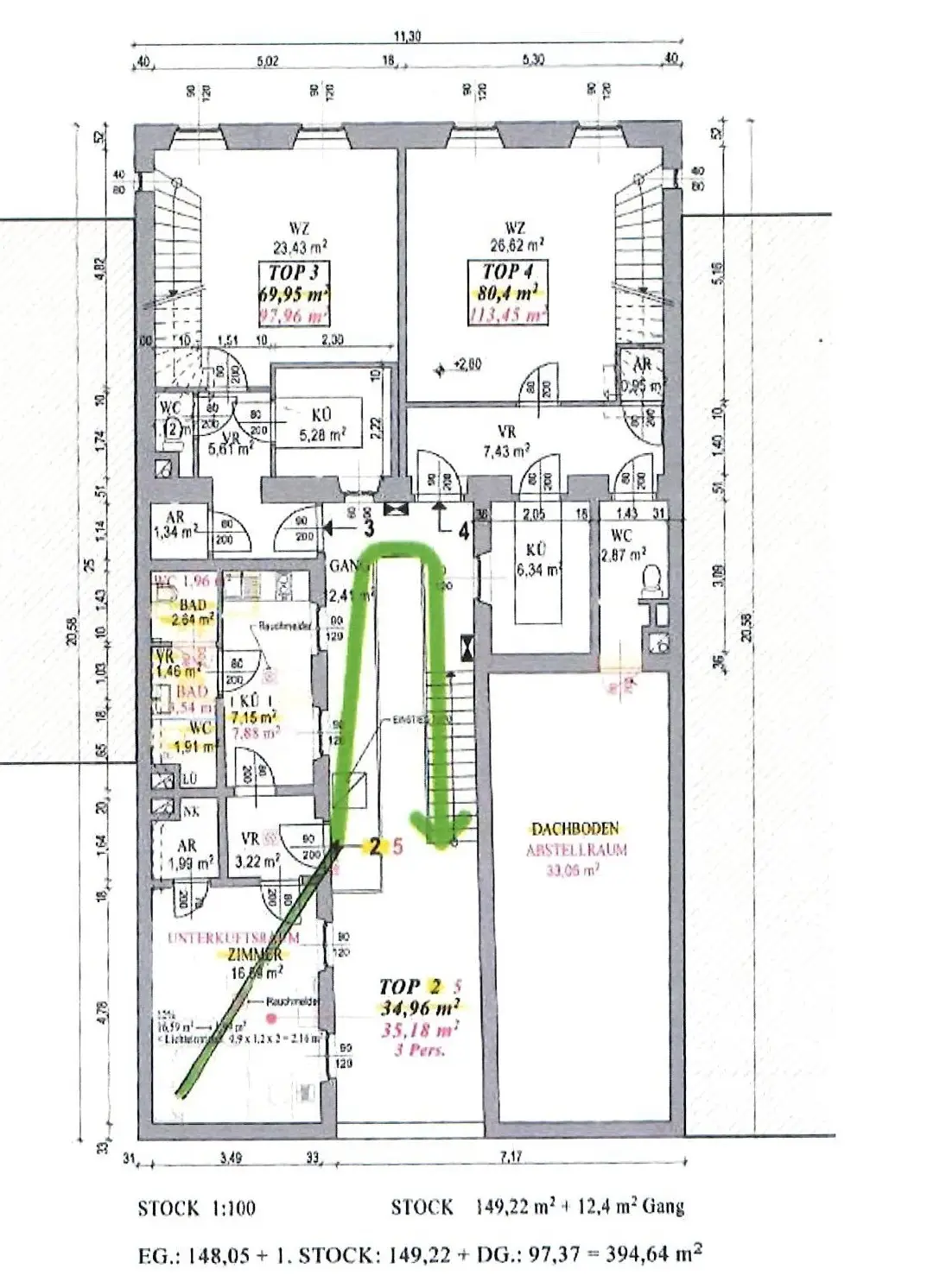 Top 1 - Geschäftslokal: 77,74 m² (derzeit nicht renoviert)
