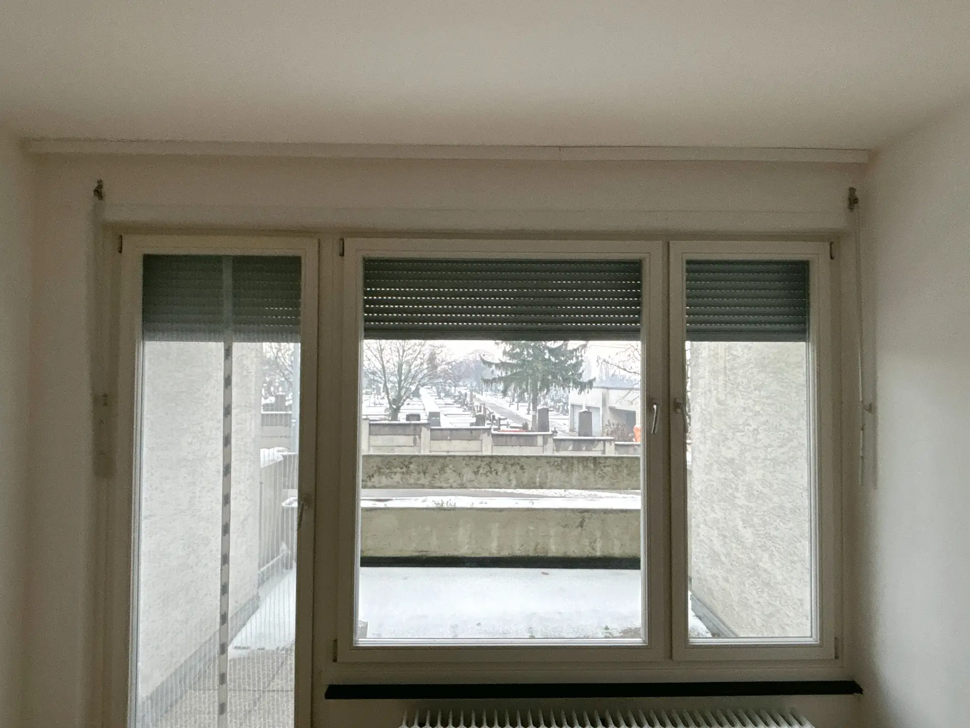 Die Wohnung befindet sich im Erdgeschoß und hat eine große Fensterfront,