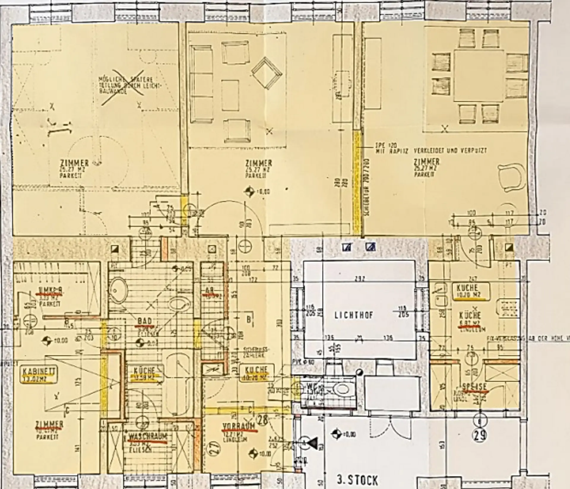 - Top W27–29: ca. 126,74 m² ~ 4 Zimmer ~ BK € 496,05 (Stand 2024) ~ Kaufpreis € 8.930,00